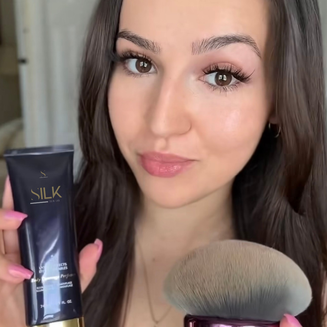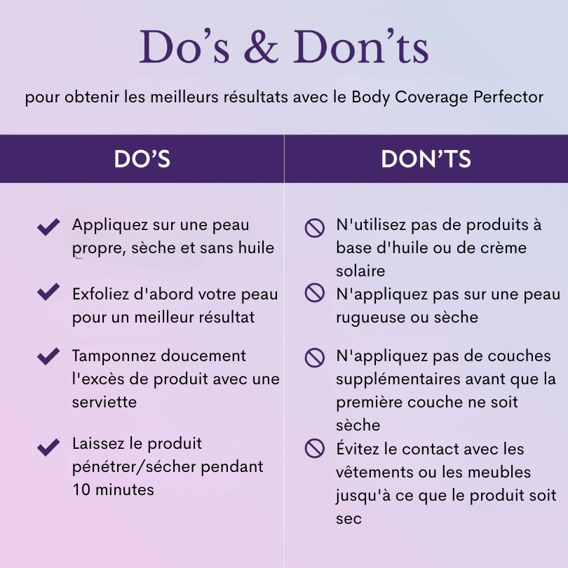 Ce camouflage corps unique et illuminateur combiné, grâce à la Tri-Effects Technology innovante, offre chaque jour une peau uniforme et éclatante en toute simplicité. Contrairement au maquillage traditionnel pour jambes et corps, notre formule révolutionnaire a un aspect naturel et est cliniquement prouvée : waterproof, résistante au frottement et reste parfaitement en place pendant plusieurs jours.