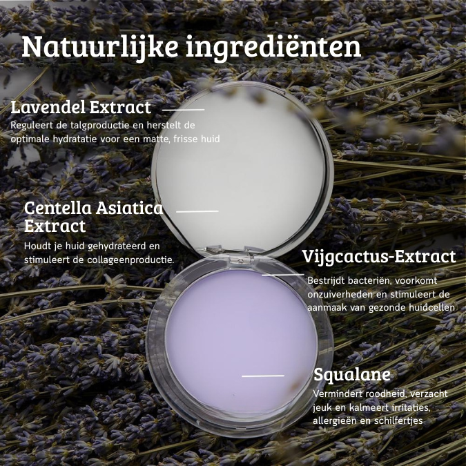 • Lavendel-extract en Squalane reinigen poriën en zorgen dat je huid de juiste olie- en vochtbalans behoudt.