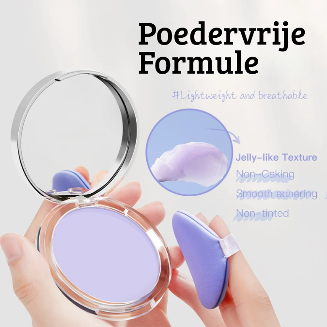 De eerste setting powder die géén poeder is: onze gel-achtige formule is kleurloos, houdt je huid mat, fris en ademend zonder een cakey laagje.”