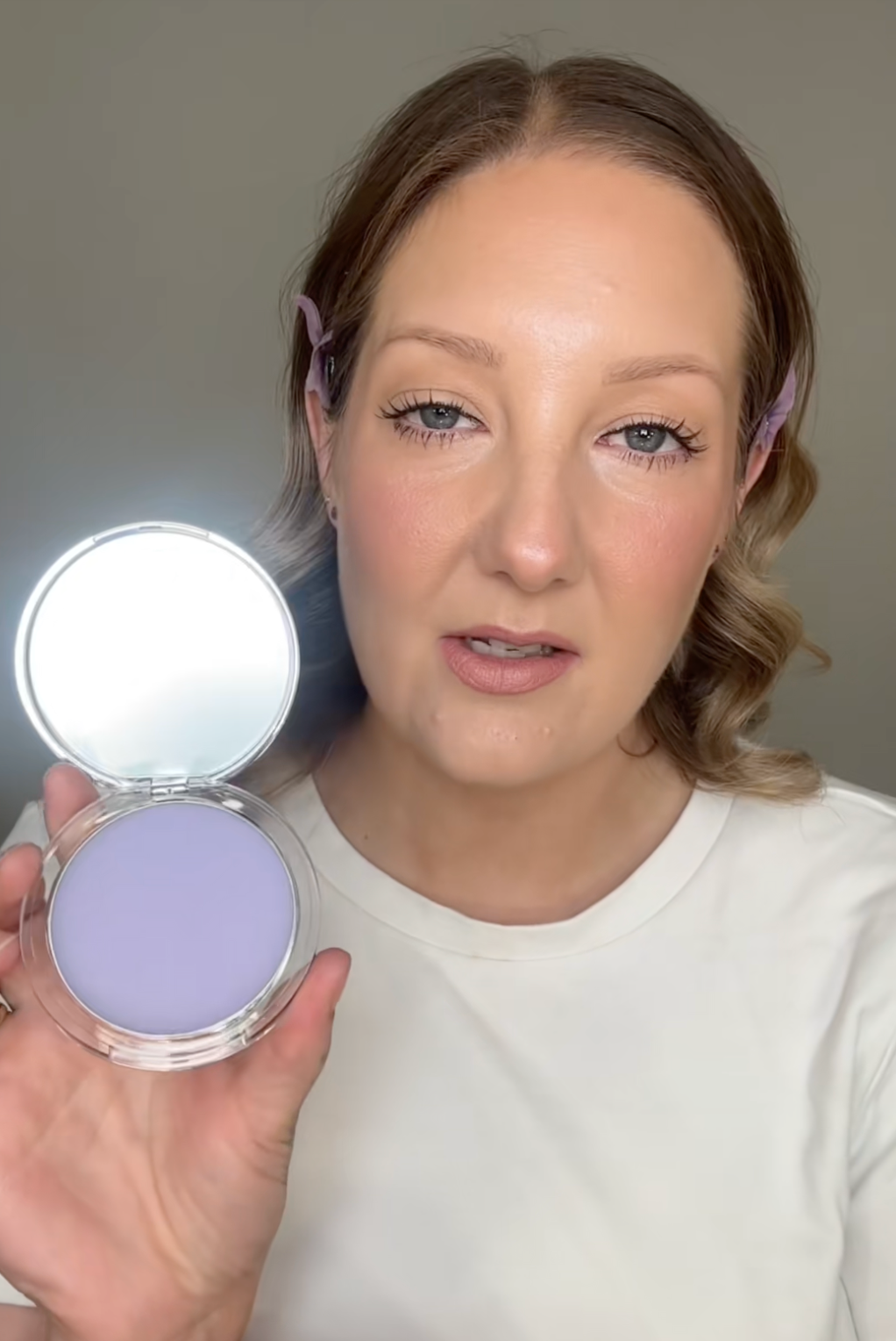 zegt dat hun huid er direct matter en gladder uitziet na gebruik van de Lavender Matte Powder.